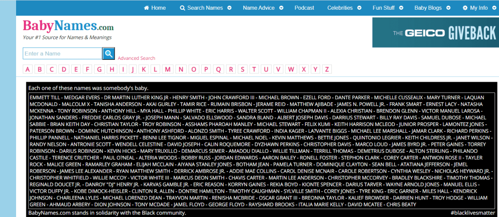 From the murder of a man by the police. Are the police always to blame? No, but this is the shock value of a death that happens quickly, not the death of a thousand cuts. This just goes back further … let me share this little picture, taken from Babynames.com on 06.19.20: